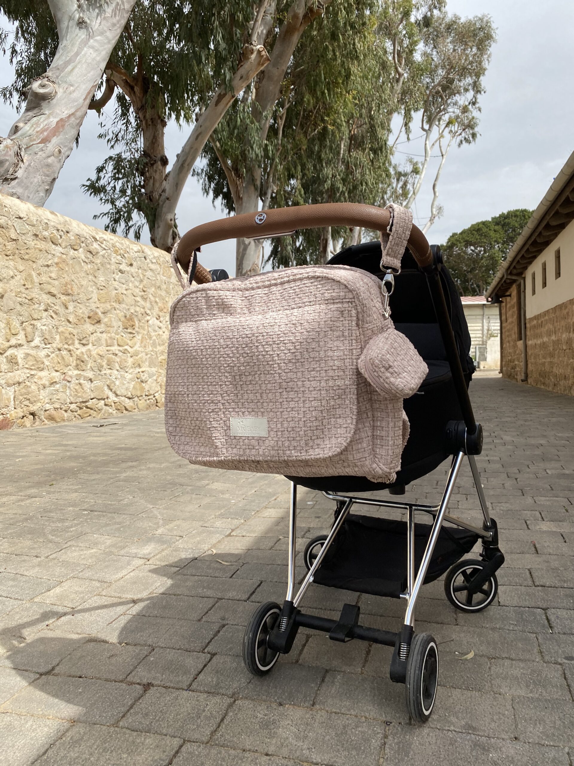 - התיק נתלה על העגלה באמצעות 2 תופסנים שאותם מקבלים עם התיק!